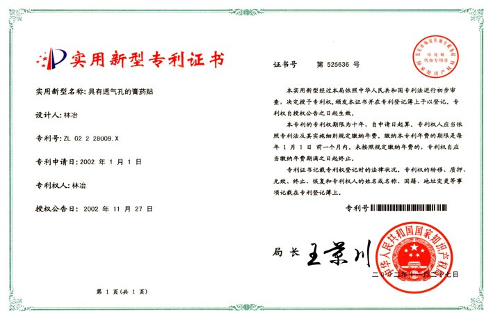 實用新型專利證書